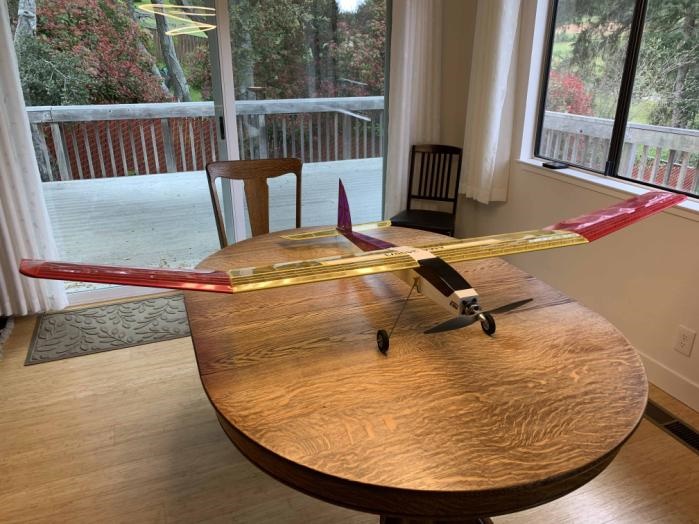 I sent a few photos of my finished Helium MG a Bill Stevens kit. Who knows when I’ll get to fly it, but it was a pleasant project. 2 meter span, weighs only ~25oz. Looking for another building project to keep me busy, especially considering that we may be stranded here for who knows how long. Cheers!
